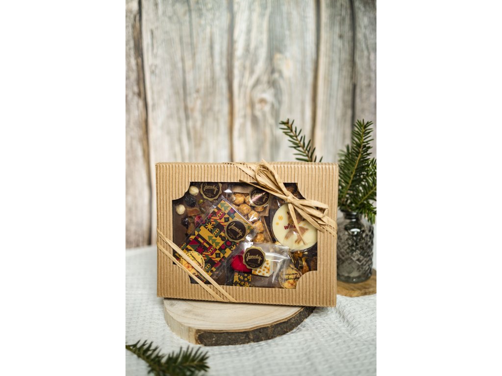 Vánoční balíček s čokoládovými výrobky Janský.